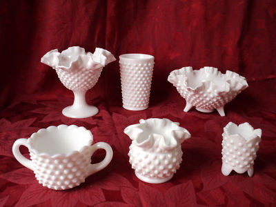 Lot 6 Vintage Fenton Hobnail Milk Glass Bowls Vases