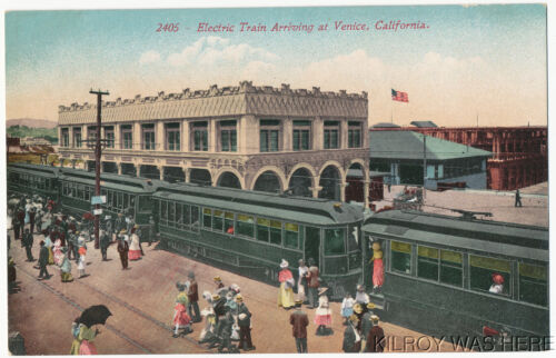 C1908 PC Electric Train Trolley Arrives Venice Ca Super Color Ed Mitchell Image!