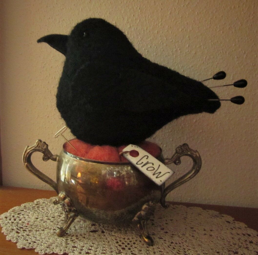 Title (ebay affiliate link): PRIMITIVE WOOL CROW BIRD VINTAGE SILVER SUGAR BOWL MAKE DO PIN CUSHION PFATT