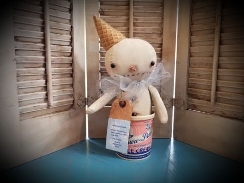 Title (ebay affiliate link): Primitive Snowman Doll in Vintage Ice Cream Container ~ Snow ~ Winter ~