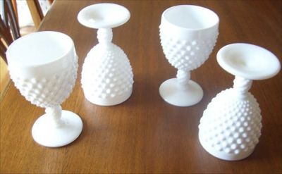 4 MILK GLASS HOB NAIL GOBLETS (Fenton?) 5.5"