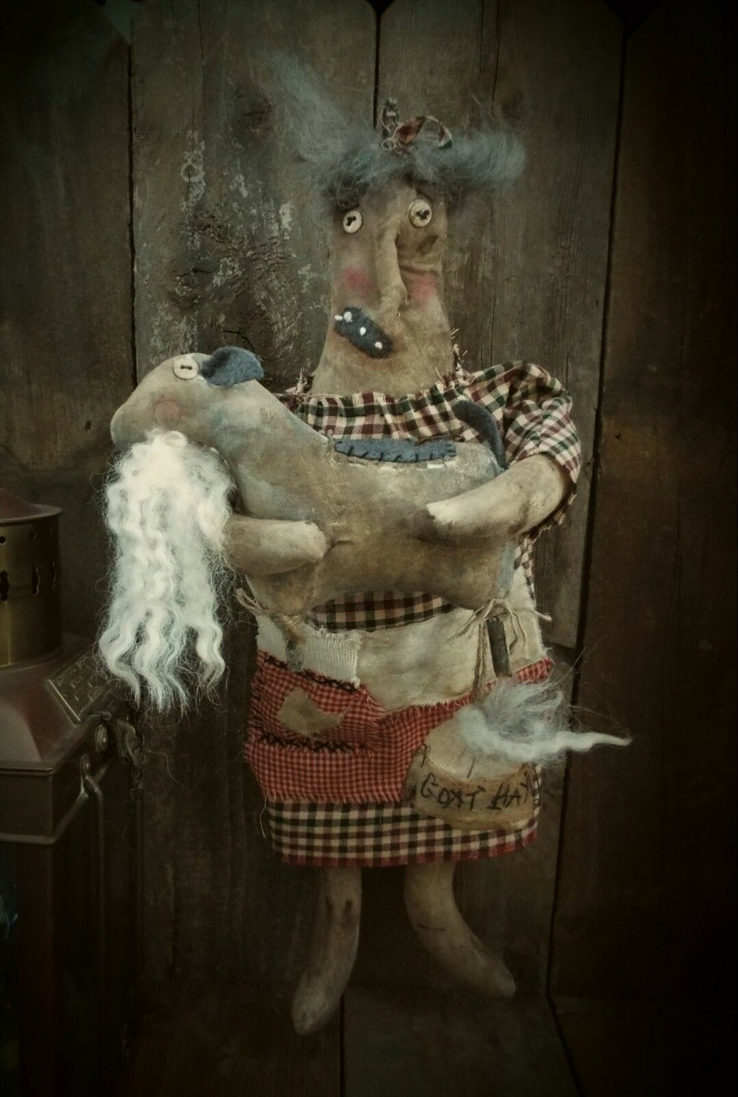 Primitive Grungy Folk art Doll Shelf Hanger / Sitter