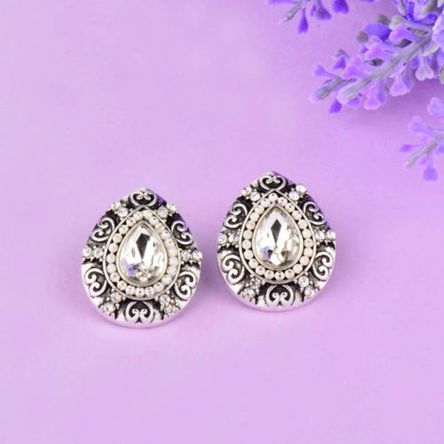 Title (ebay affiliate link): White Vintage Drop Rhinestone Antique Silver Carvings Heart Pattern Earrings