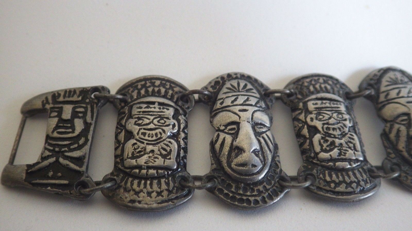 VINTAGE ANTIQUE MEDIEVAL EGYPTIAN REVIVAL PEWTER BOOK BRACELET