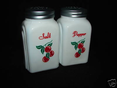 MILK GLASS ROMAN ARCH CHERRIES SALT & PEPPER SHAKERS