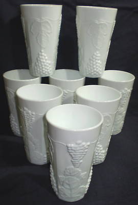 8 WHITE MILKGLASS GRAPE & LEAF TALL TUMBLERS