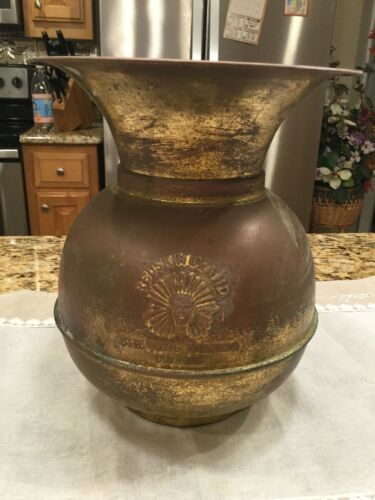 Vintage Brass Redskin Brand Chewing Tobacco Cut Plug Spitoon Chief Cuspidor