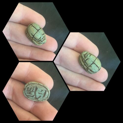 Title (ebay affiliate link): Rare ancient Egyptian scarab beetle with hieroglyphics, 300 bc