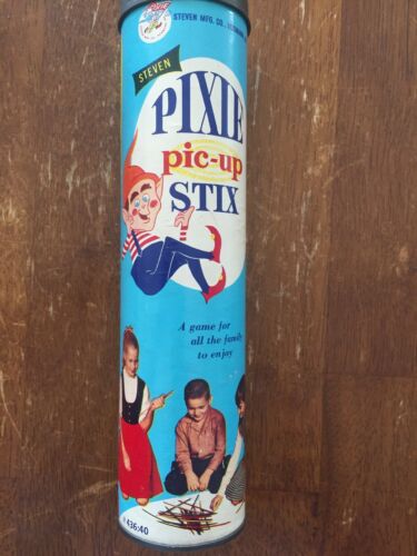 Title (ebay affiliate link): Steven Pixie Pic Up Stix 1960s Toy Elf Pick Up Sticks Canister Tube Vintage Game