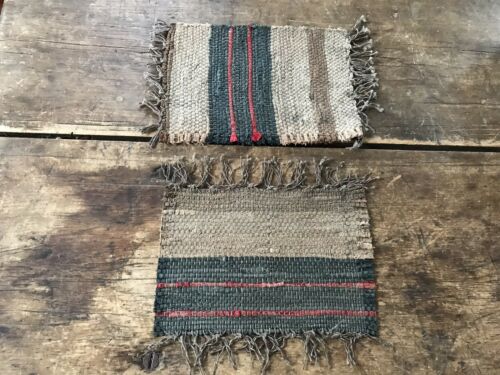 2 Antique Small Candle Mats Table Rugs Runner Brown Blue Country AAFA Textile