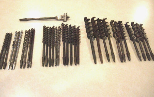 Title (ebay affiliate link): 33 pc Lot Vtg Hand Brace Auger Drill Bits 7.5"L -10"L