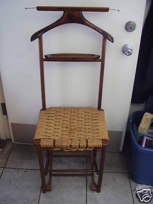 VINTAGE WOODEN HALL TREE FOLDING WICKER CHAIR,ITALY