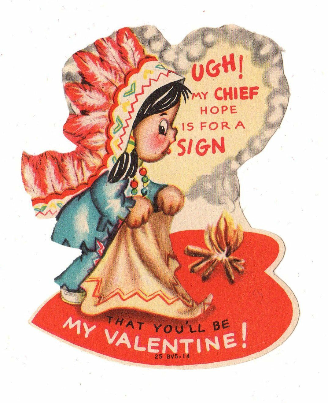 Title (ebay affiliate link): NATIVE AMERICAN INDIAN CHIEF SENDING SMOKE SIGNALS "UGH" /VINTAGE VALENTINE CARD