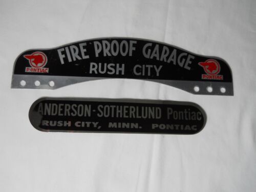 ORIGINAL 1950''S PONTIAC LICENCE PLATE TOPPER FIRE PROOF GARAGE RUSH CITY MN NOS