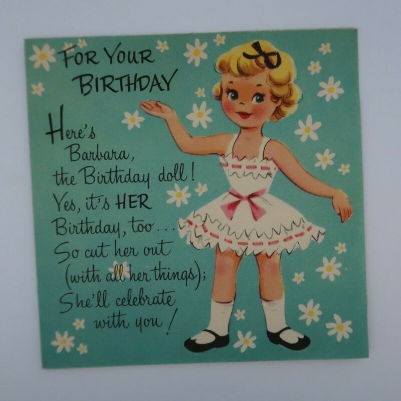 Title (ebay affiliate link): Vintage Birthday Greeting Card Cute Girl Paper Doll and Clothes