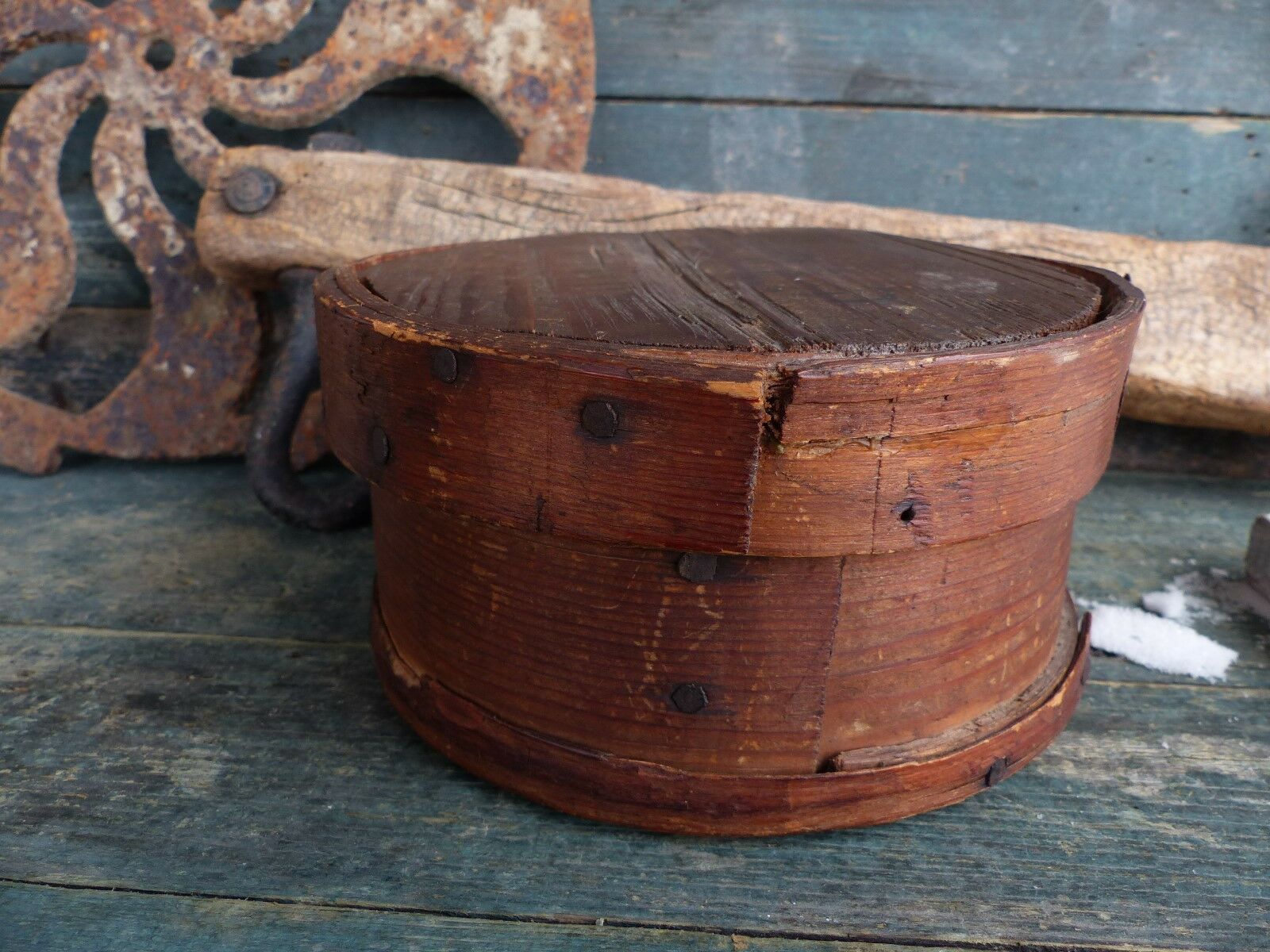Title (ebay affiliate link): antique primitive very early pantry box super brown petina 6.75 in square nails