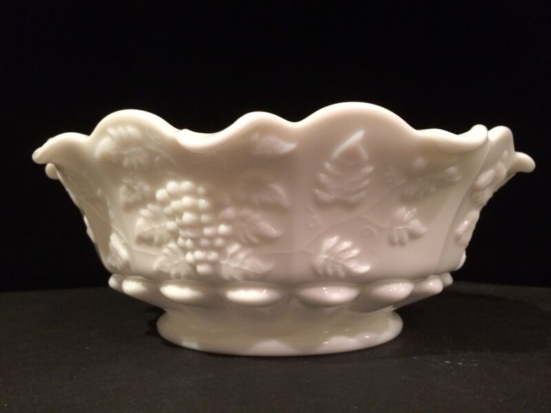 Title (ebay affiliate link): Westmoreland Glass Company Paneled Grape Milk Glass 9" pig lip bowl