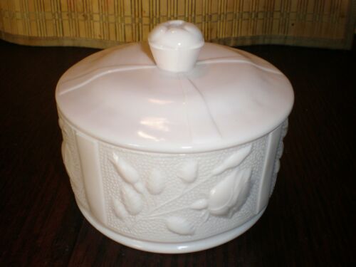 Title (ebay affiliate link): Vintage Jeannette Shell Pink Milk Glass Rose Dresser Powder Box Candy Dish Jar