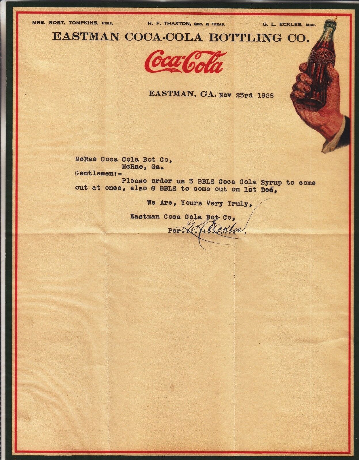 Title (ebay affiliate link): EASTMAN COCA-COLA BOTTLING CO. LETTERHEAD DATED Nov. 24rd, 1928