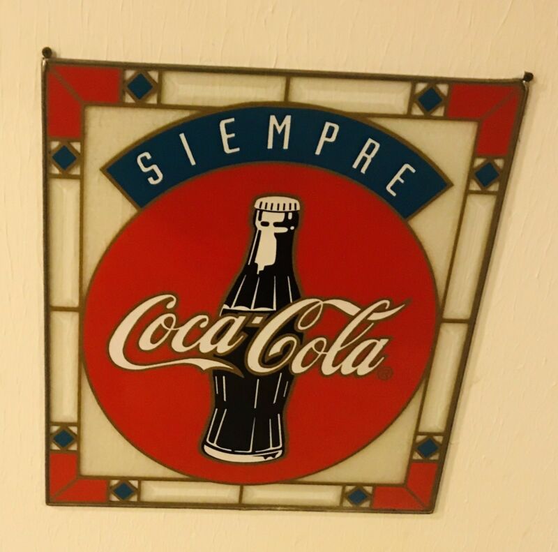 Vintage SIEMPRE COCA-COLA Glass Panel Logo Sign Rare Spanish