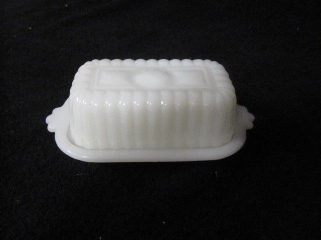 Title (ebay affiliate link): Vintage Hazel Atlas Half Stick Ribbed Butter Dish Milk Glass Mint
