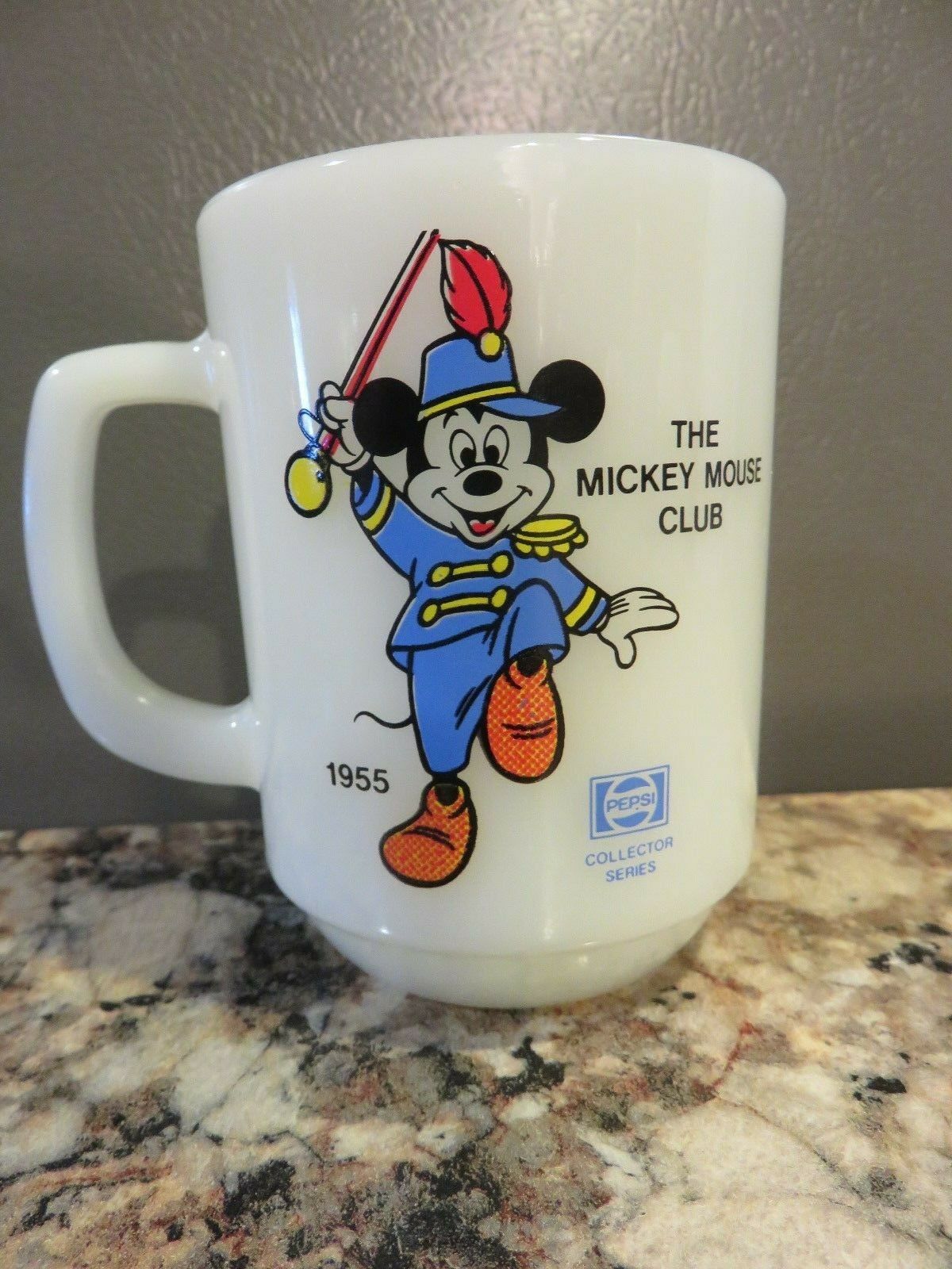 Title (ebay affiliate link): VINTAGE ANCHOR HOCKING WALT DISNEY MICKEY PEPSI PROMO MILK GLASS D HANDLE CUP