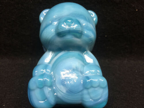 Blue Milk glass Teddy Bear figurine paperweight slag swirl opaque marble childs