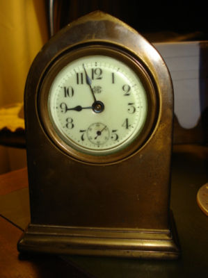 ANTIQUE JENNINGS BROTHERS BRASS MANTLE OR SHELF CLOCK