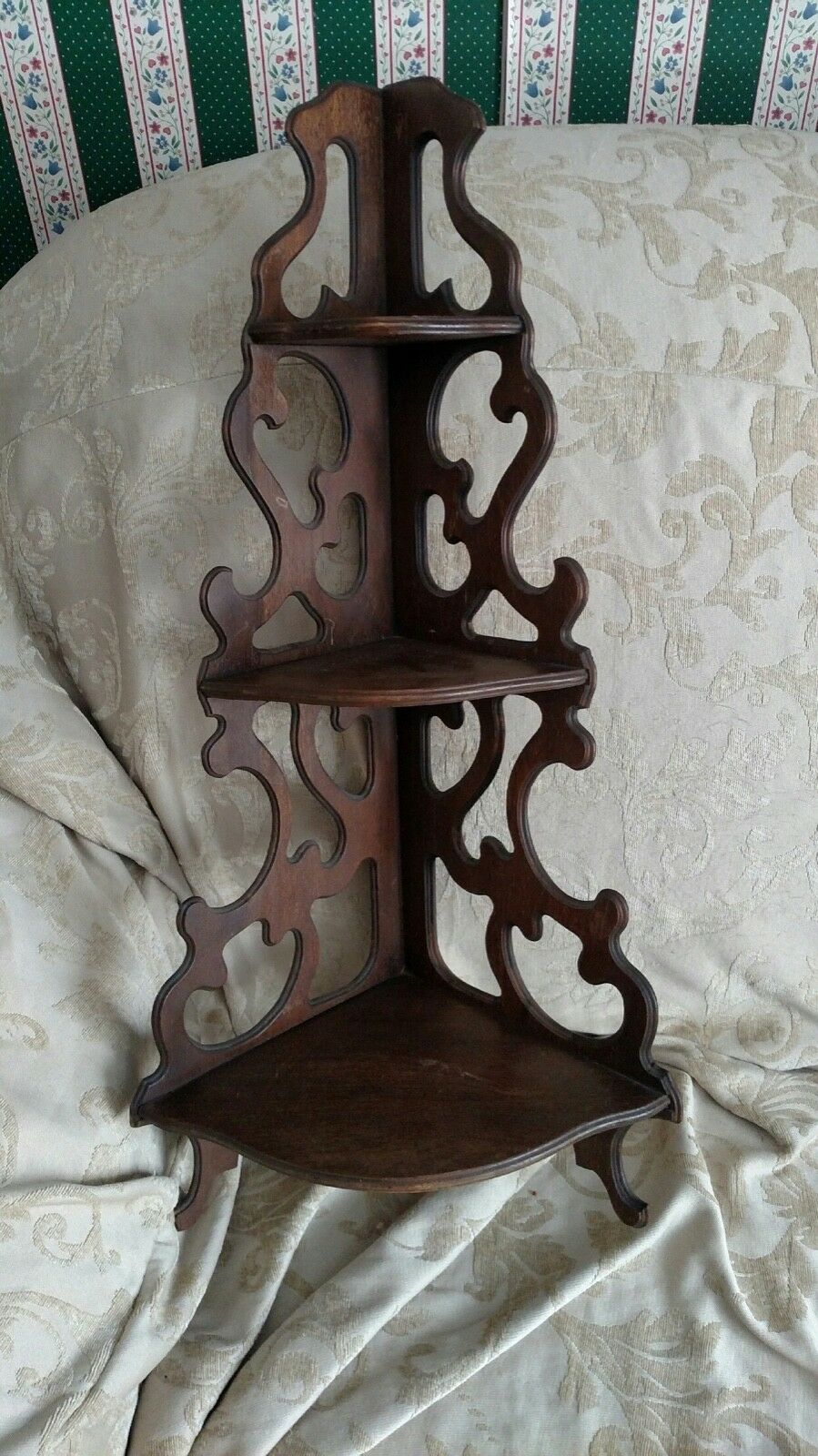 Vintage Wood Corner Shelf 3 Shelves for Hanging