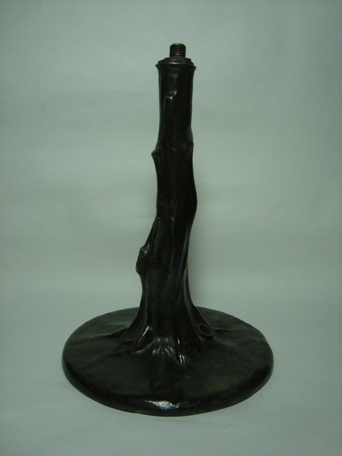 AN ANTIQUE CAST PEWTER RUSTIC LAMP COLUMN, BASE.