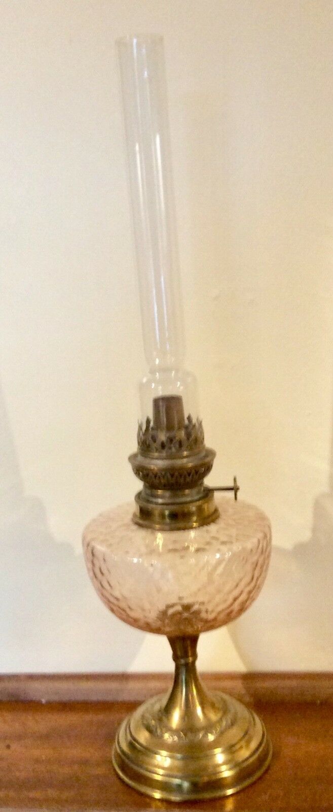 Antique Victorian Brass and Pink Glass OIL LAMP
