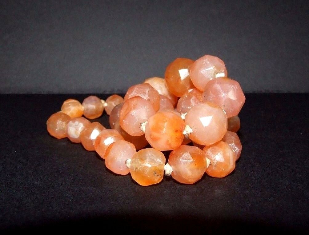 ANTIQUE ART DECO FACETED NATURAL AGATE BEADED NECKLACE. 21 INCHES.