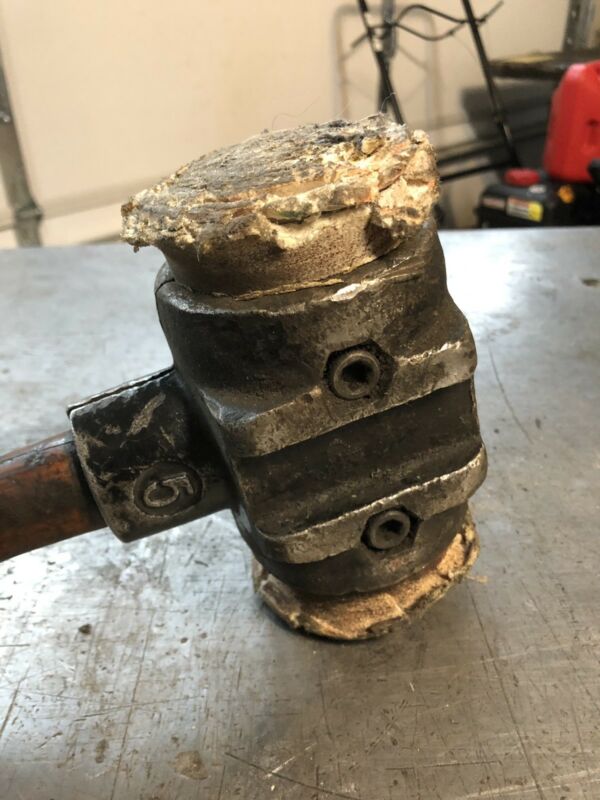 Title (ebay affiliate link): Cast Iron Rawhide Leather 5lb Hammer/Mallet