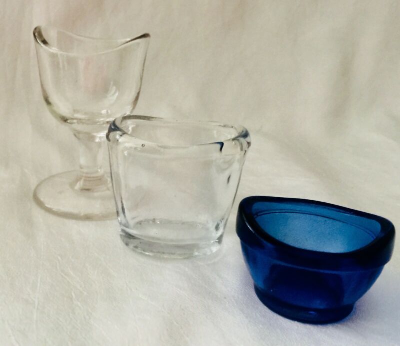 Title (ebay affiliate link): Antique LOT of 3 Glass Eye Wash Cups - Two Clear and One Cobalt Blue