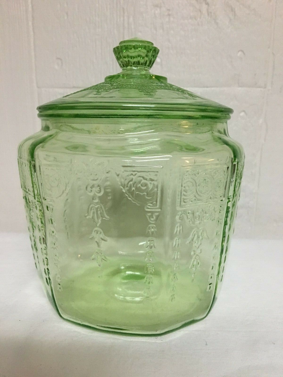 Title (ebay affiliate link): Vintage Hocking Princess Cookie Biscuit Jar Box with Lid Green Depression Glass