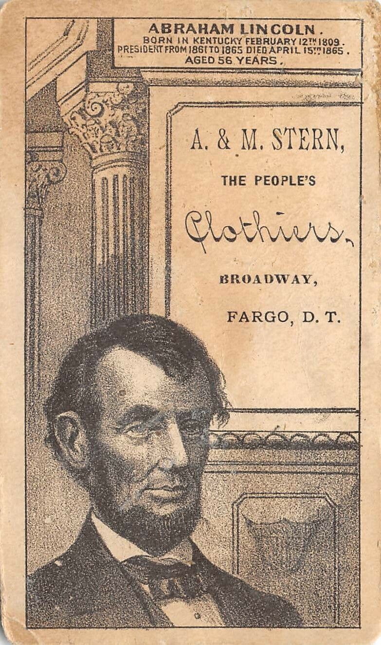 Title (ebay affiliate link): Fargo Dakota Territory Pres Abraham Lincoln Victorian Trade Card Stern Clothiers