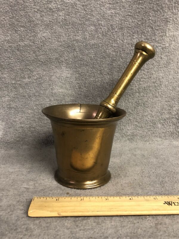 Antique Mortar And Pestle Apothecary Heavy Brass Cast