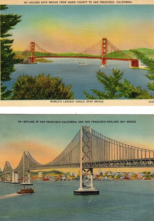 Title (ebay affiliate link): 2 ~ Vintage California CA ~ Golden Gate Bridge and San Francisco Bay Bridge