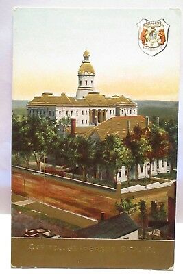 1910 GOLD EMBOSSED POSTCARD " CAPITOL, JEFFERSON CITY MO " W/ STATE CREST UNUSED