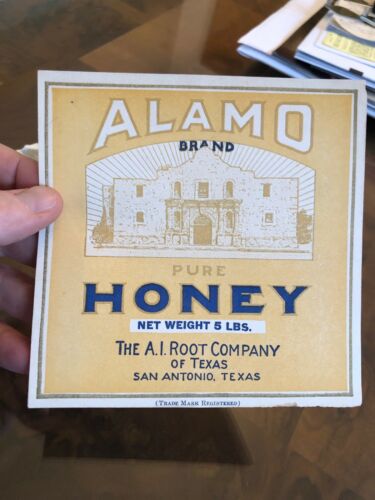 Title (ebay affiliate link): Rare Vintage Alamo Honey Unused Crate Label Root Candle Co. San Antonio Texas