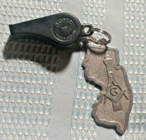 Antique Free Masons New Jersey Sheped Key Chain with English whistle