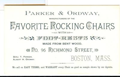 @1890s FAVORITE ROCKING CHAIRS BOSTON MA Business Card