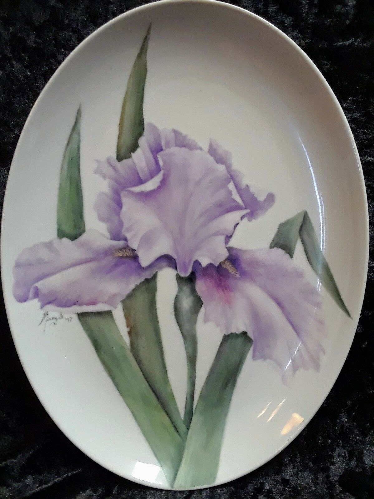 Artist Signed 1997 Iris Painted Plate with Poem Mary Reel