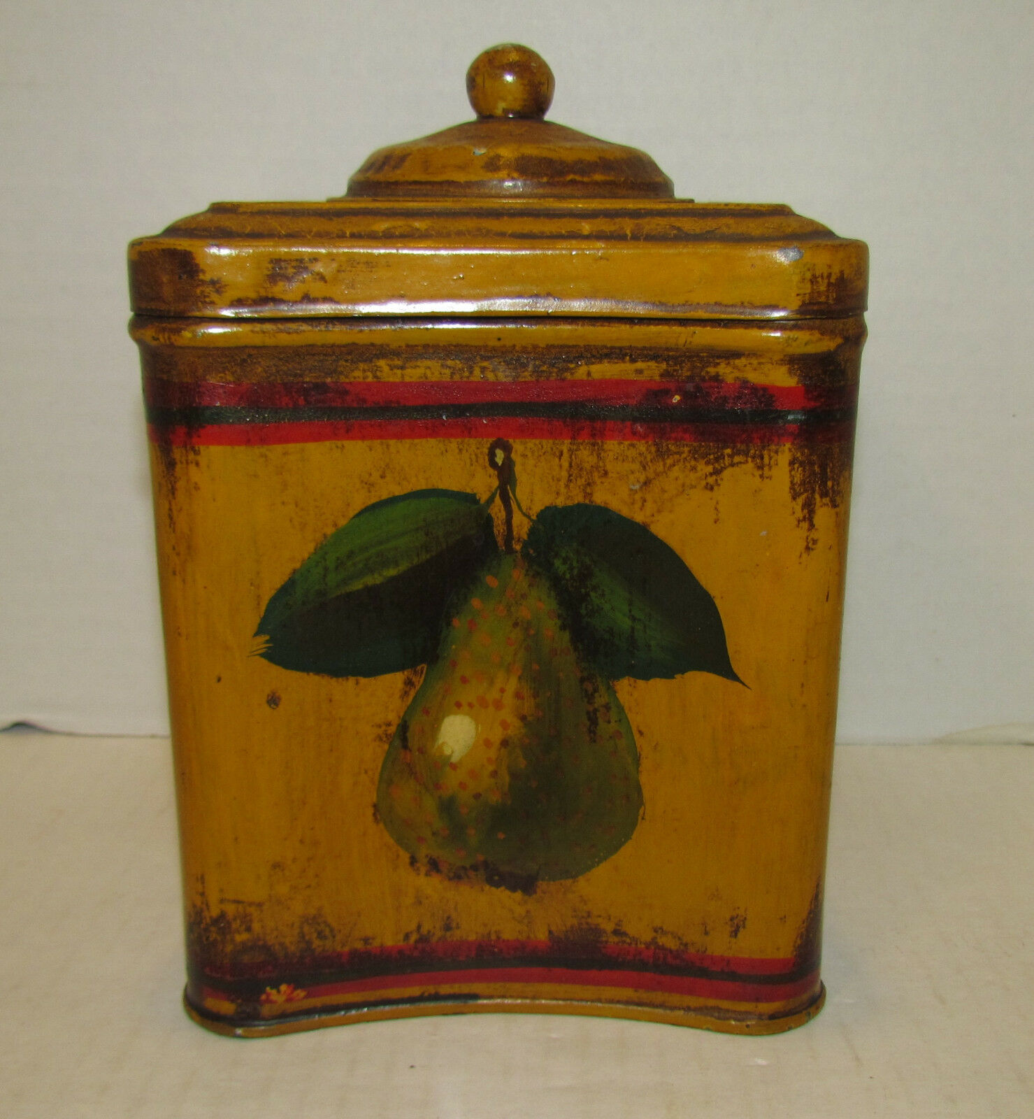 Vintage Signed Peter Ompir Tin Box Humidor Pears Hand Painted Tole Toleware Tea