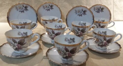 Fine Vintage Bone China Tea Cups and Saucers, 8 sets, White with Gold Trim