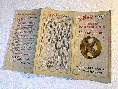 VNTG REEVES SPLIT PULLEY USERS FOLD-OUT HOOKER & SONS, ST. JOHNSBURY, VT.