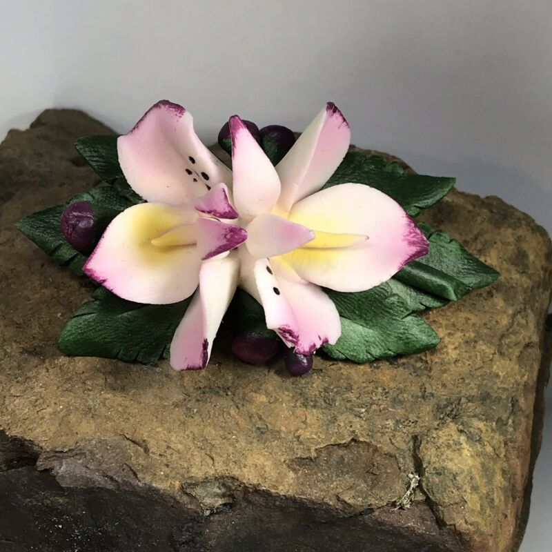Vintage BELFIORE Purple ORCHIDS Flowers Bisque CAPODIMONTE Brooch PIN Italy