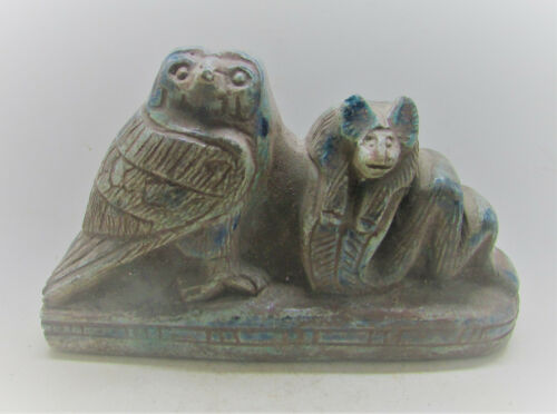 Title (ebay affiliate link): VERY UNUSUAL ANCIENT EGYPTIAN GLAZED OBJECT OWL AND SNAKE
