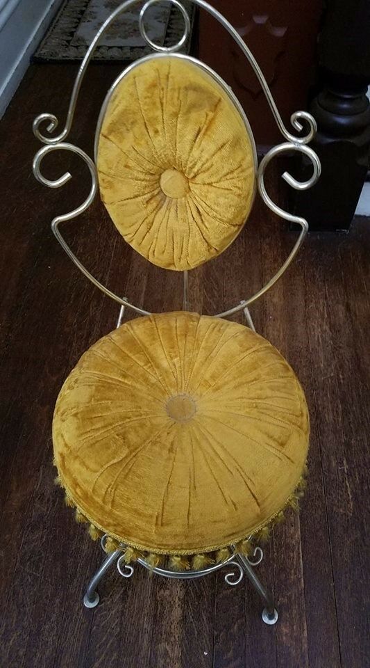 Title (ebay affiliate link): Vintage vanity swivel chair golden yellow velvet Delta metal Industries inc