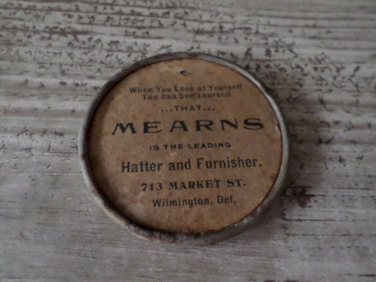 Antique Advertising Pocket Mirror MEARNS Hatter and Furniture Wilmington, Del